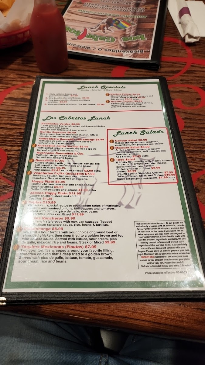 Los Cabritos Mexican Grill Menu